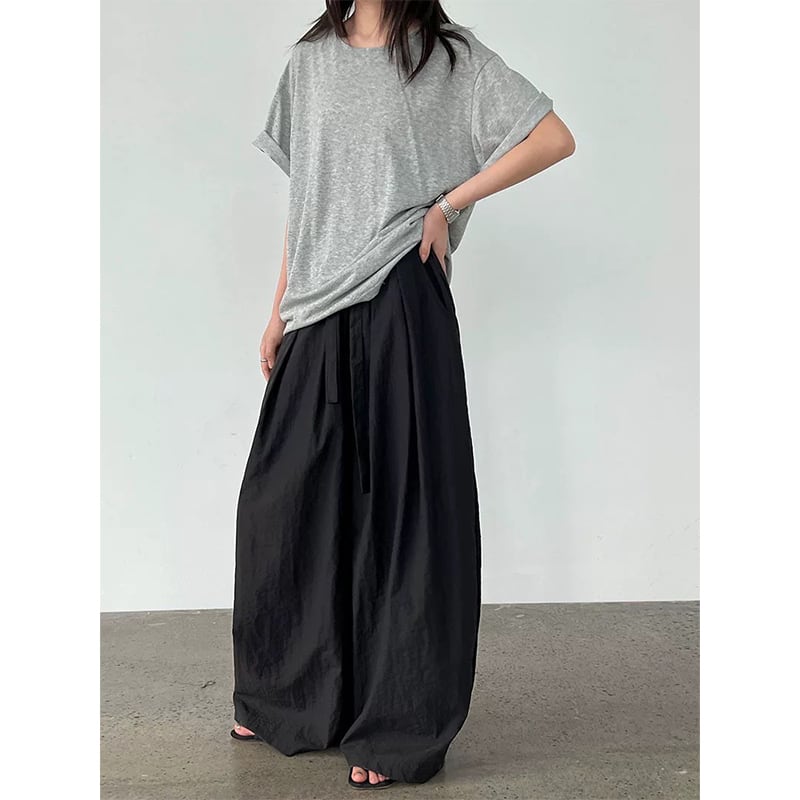 腰回りから広がるゆったりシルエットで美脚見えが期待できるアイテム。 きれいめコーデにもカジュアルなコーデにも◎◎ 【サイズ】 M ウエスト:64-72cm ヒップ:118cm 太もも周り:88cm パンツ丈:99cm L ウエスト:68-76cm ヒップ:122cm 太もも周り:90cm パンツ丈:101cm ※モデル 163cm/47kg 着用サイズ M ※サイズは測り方により1-3cm程度誤差がある場合がございます。 【素材】 ナイロン75%、コットン25% 【カラー】 グレー ブラック ■hekemeaでは、多数アイテムを取り揃えております。 下記URLよりぜひチェックしてみて下さい。 https://shop.hekemea.com/ ****ご購入前に必ずお読みください**** https://shop.hekemea.com/about 【お届けについて】 こちらの商品は海外店舗より直接発送となる為、 ご入金から2~4週間前後で発送致します。 ■注意事項 ・タイミングによっては 商品在庫切れにより注文キャンセルとさせていただく恐れもございますので、予めご了承くださいませ。 ・こちらは輸入品となります。日本製とは検品基準が異なる為、新品未使用品でもごくわずかな汚れや ほつれがある場合もございます。 ・仕入れ工場を変えることがあるため、記載サイズと若干異なる場合がございます。 ・商品の色味は、お手持ちのデバイスの画面によって実物と若干異なる場合がござます。 ・イメージ違いやサイズ交換等、お客さまご都合による交換、返品は対応出来かねます。