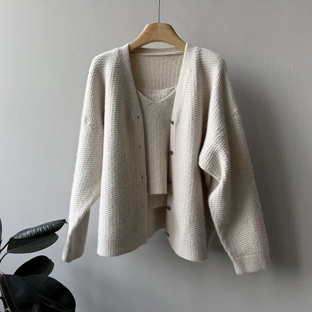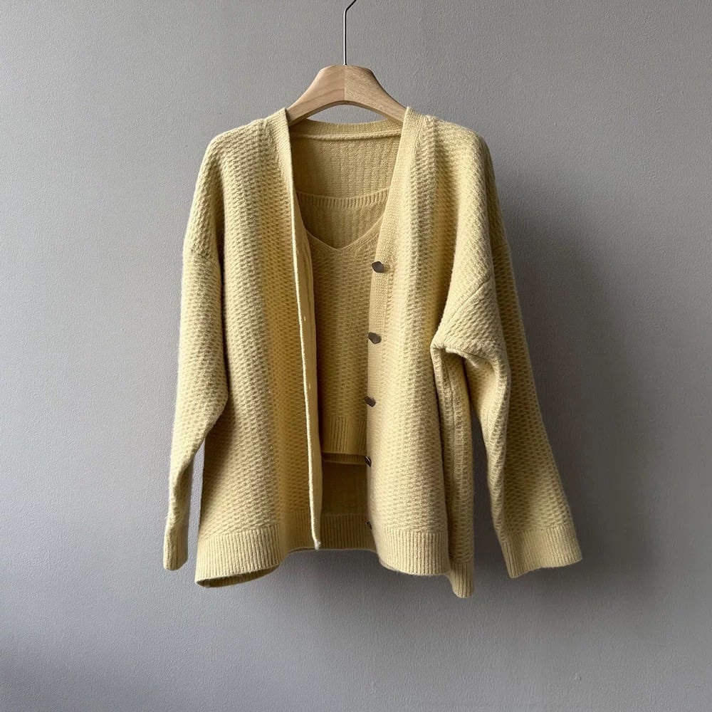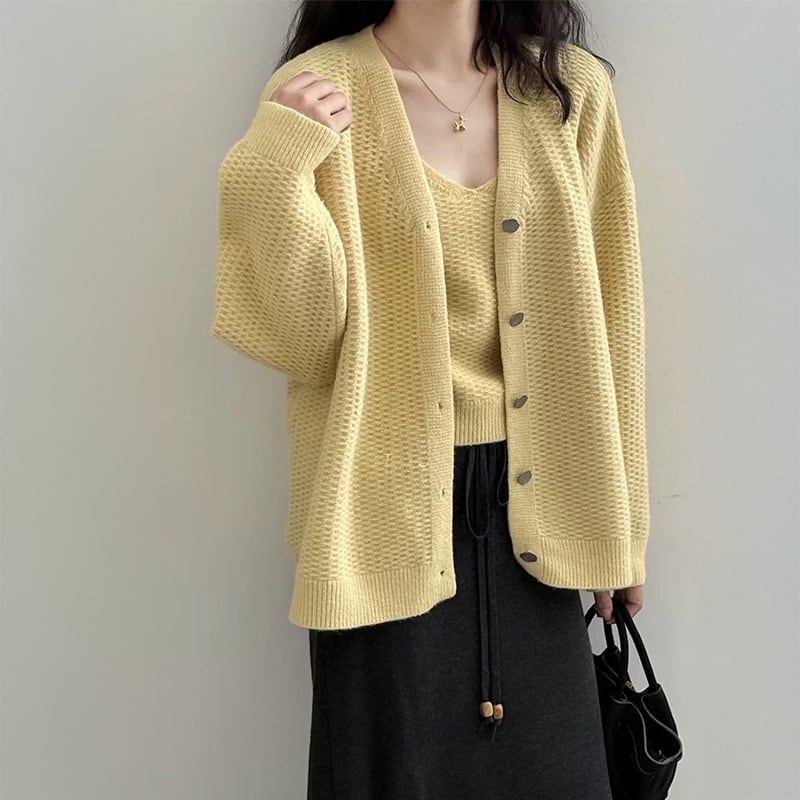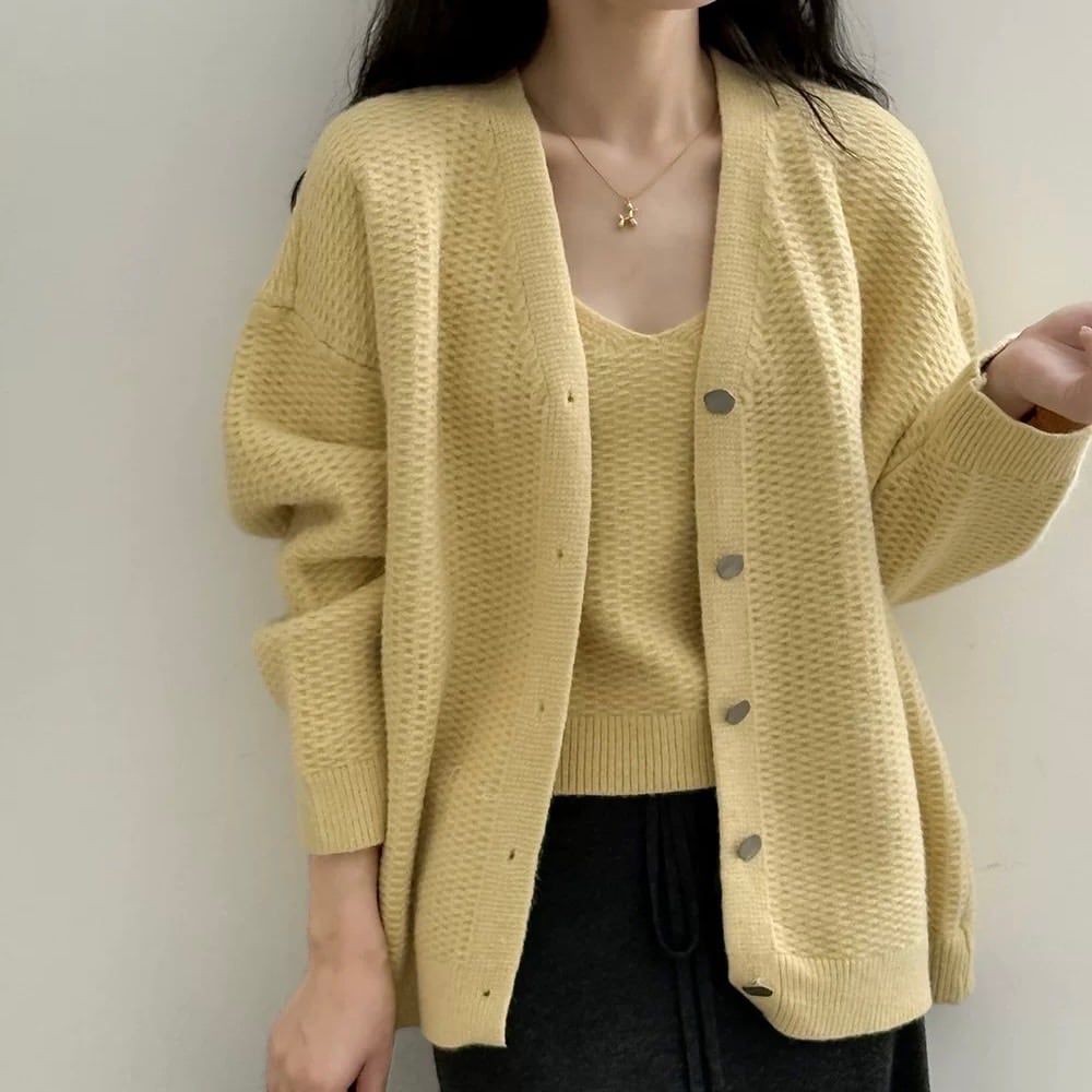 【サイズ】 キャミソール Freeサイズ 胸囲:68cm 着丈:46cm カーディガン Freeサイズ 肩幅:59cm 胸囲:120cm 袖丈:45cm 着丈:59cm ※サイズは測り方により1-3cm程度誤差がある場合がございます。 【素材】 アクリル42%、ナイロン38%、ポリエステル20% 【カラー】 イエロー オフホワイト グレー ■hekemeaでは、多数アイテムを取り揃えております。 下記URLよりぜひチェックしてみて下さい。 https://shop.hekemea.com/ ■今週のHIT ITEMSはこちら♪ https://shop.hekemea.com/categories/4955484 ****ご購入前に必ずお読みください**** https://shop.hekemea.com/about 【お届けについて】 こちらの商品は海外店舗より直接発送となる為、 ご入金から2~4週間前後で発送致します。 ■注意事項 ・タイミングによっては 商品在庫切れにより注文キャンセルとさせていただく恐れもございますので、予めご了承くださいませ。 ・こちらは輸入品となります。日本製とは検品基準が異なる為、新品未使用品でもごくわずかな汚れや ほつれがある場合もございます。 ・仕入れ工場を変えることがあるため、記載サイズと若干異なる場合がございます。 ・商品の色味は、お手持ちのデバイスの画面によって実物と若干異なる場合がござます。 ・イメージ違いやサイズ交換等、お客さまご都合による交換、返品は対応出来かねます。