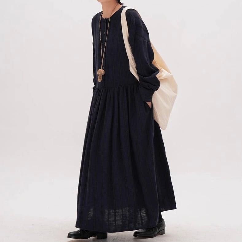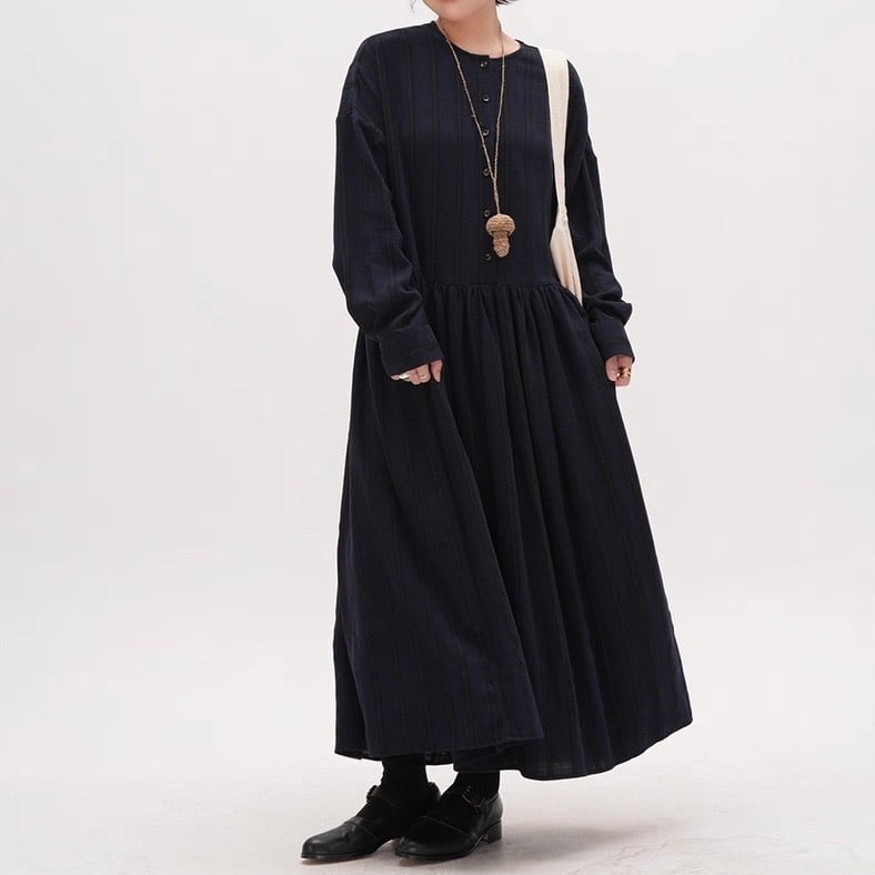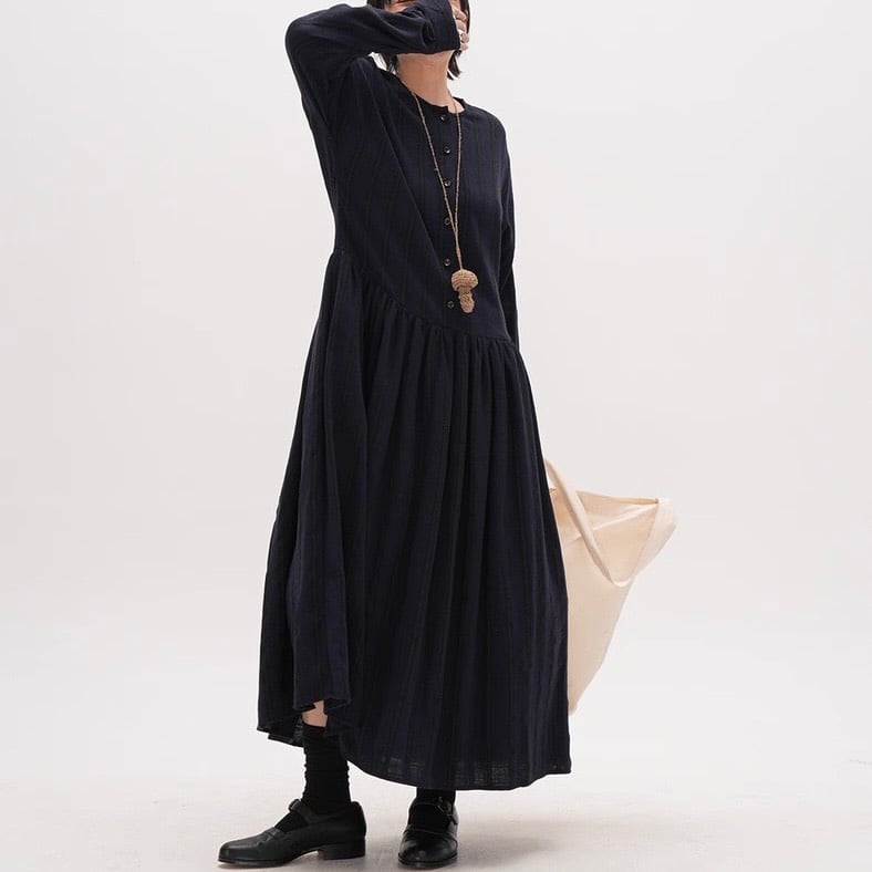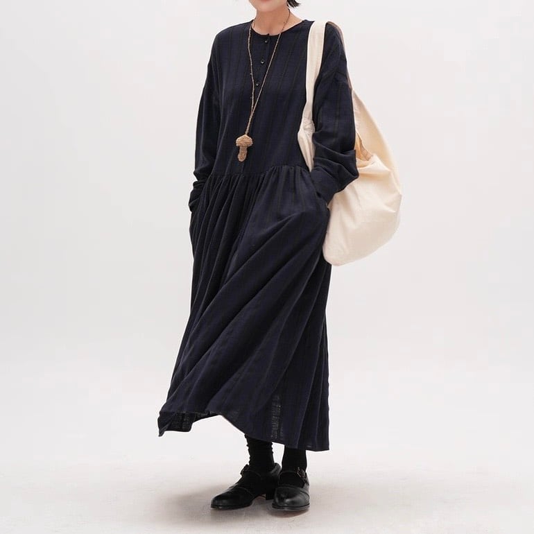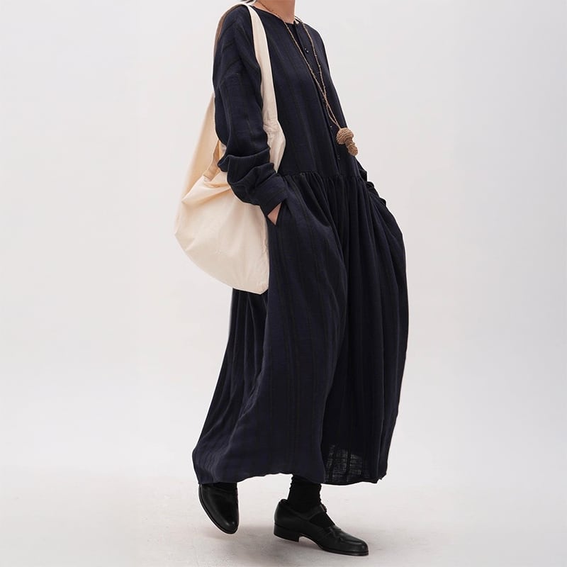 【サイズ】 S 肩幅:61cm 胸囲:108cm ウエスト:96cm 袖丈:48cm 着丈:126cm M 肩幅:62cm 胸囲:112cm ウエスト:100cm 袖丈:49cm 着丈:126cm L 肩幅:63cm 胸囲:116cm ウエスト:104cm 袖丈:50cm 着丈:126cm XL 肩幅:64cm 胸囲:120cm ウエスト:108cm 袖丈:51cm 着丈:126cm ※モデル 163cm/47kg 着用サイズ S ※サイズは測り方により1-3cm程度誤差がある場合がございます。 【カラー】 ネイビー 【素材】 ビスコース70%、リネン30% ■hekemeaでは、多数アイテムを取り揃えております。 下記URLよりぜひチェックしてみて下さい。 https://shop.hekemea.com/ ****ご購入前に必ずお読みください**** https://shop.hekemea.com/about 【お届けについて】 こちらの商品は海外店舗より直接発送となる為、 ご入金から2~4週間前後で発送致します。 ■注意事項 ・タイミングによっては 商品在庫切れにより注文キャンセルとさせていただく恐れもございますので、予めご了承くださいませ。 ・こちらは輸入品となります。日本製とは検品基準が異なる為、新品未使用品でもごくわずかな汚れや ほつれがある場合もございます。 ・仕入れ工場を変えることがあるため、記載サイズと若干異なる場合がございます。 ・商品の色味は、お手持ちのデバイスの画面によって実物と若干異なる場合がござます。 ・イメージ違いやサイズ交換等、お客さまご都合による交換、返品は対応出来かねます。
