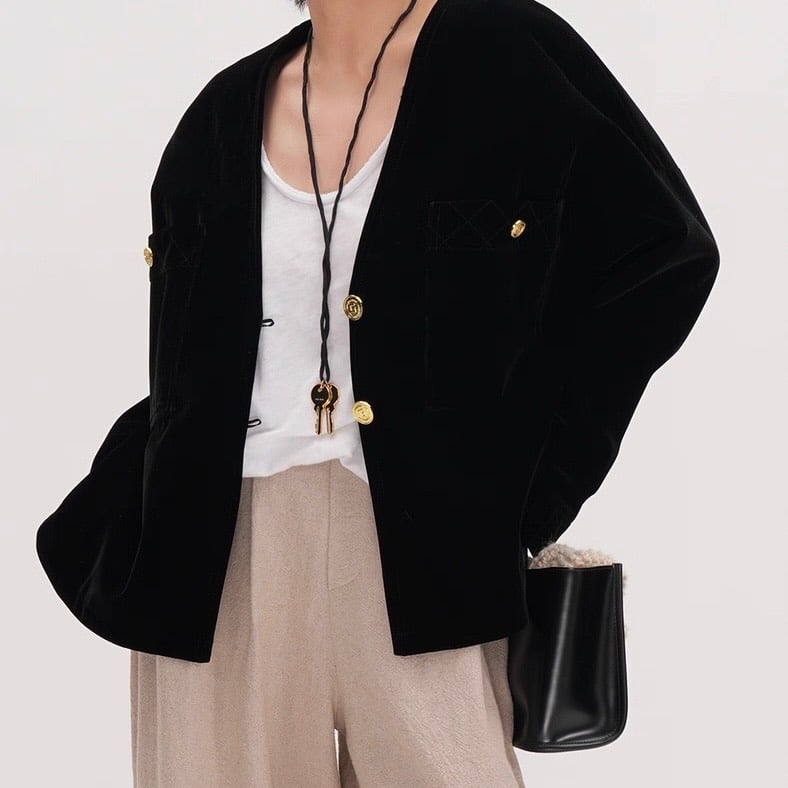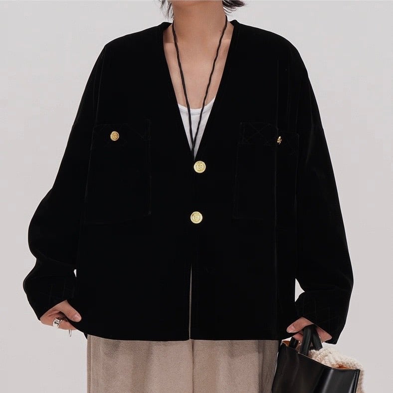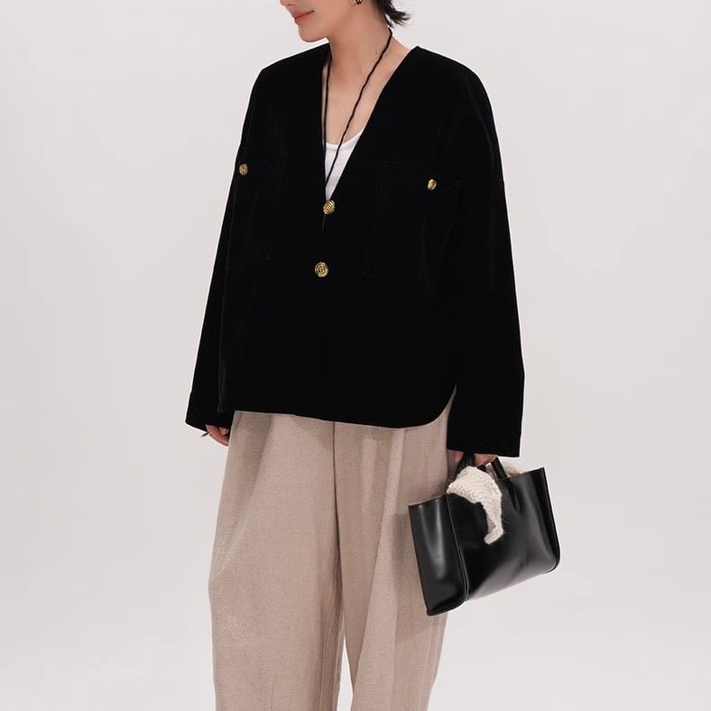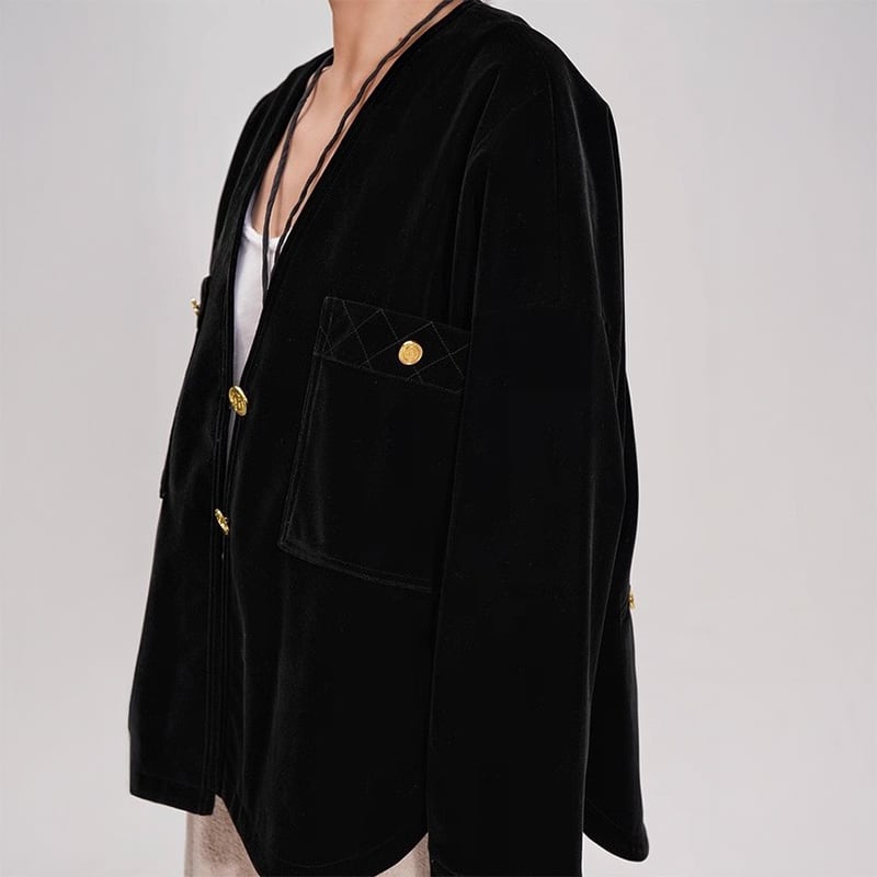 【サイズ】 S 肩幅:64cm 胸囲:128cm 袖丈:44cm 着丈:69cm M 肩幅:65cm 胸囲:132cm 袖丈:45cm 着丈:71cm L 肩幅:66cm 胸囲:136cm 袖丈:46cm 着丈:73cm XL 肩幅:67cm 胸囲:140cm 袖丈:47cm 着丈:75cm ※モデル 163cm/47kg 着用サイズ S ※サイズは測り方により1-3cm程度誤差がある場合がございます。 【素材】 ベルベット rurban:ポリエステル100% 【カラー】 ブラック ■hekemeaでは、多数アイテムを取り揃えております。 下記URLよりぜひチェックしてみて下さい。 https://shop.hekemea.com/ ■今週のHIT ITEMSはこちら♪ https://shop.hekemea.com/categories/4955484 ****ご購入前に必ずお読みください**** https://shop.hekemea.com/about 【お届けについて】 こちらの商品は海外店舗より直接発送となる為、 ご入金から2~4週間前後で発送致します。 ■注意事項 ・タイミングによっては 商品在庫切れにより注文キャンセルとさせていただく恐れもございますので、予めご了承くださいませ。 ・こちらは輸入品となります。日本製とは検品基準が異なる為、新品未使用品でもごくわずかな汚れや ほつれがある場合もございます。 ・仕入れ工場を変えることがあるため、記載サイズと若干異なる場合がございます。 ・商品の色味は、お手持ちのデバイスの画面によって実物と若干異なる場合がござます。 ・イメージ違いやサイズ交換等、お客さまご都合による交換、返品は対応出来かねます。