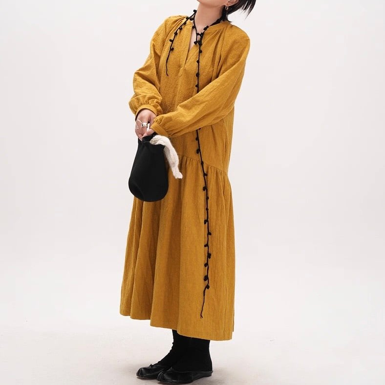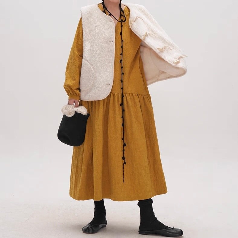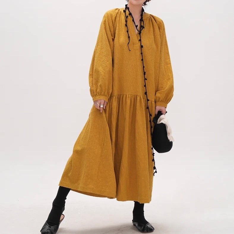 【サイズ】 S 胸囲:102cm ウエスト:102cm 袖丈:66cm 着丈:121cm M 胸囲:106cm ウエスト:106cm 袖丈:67cm 着丈:123cm L 胸囲:110cm ウエスト:110cm 袖丈:68cm 着丈:125cm XL 胸囲:114cm ウエスト:114cm 袖丈:69cm 着丈:127cm ※モデル 163cm/47kg 着用サイズ S ※サイズは測り方により1-3cm程度誤差がある場合がございます。 【カラー】 イエロー 【素材】 コットン40%、リネン30%、ビスコース30% ■hekemeaでは、多数アイテムを取り揃えております。 下記URLよりぜひチェックしてみて下さい。 https://shop.hekemea.com/ ****ご購入前に必ずお読みください**** https://shop.hekemea.com/about 【お届けについて】 こちらの商品は海外店舗より直接発送となる為、 ご入金から2~4週間前後で発送致します。 ■注意事項 ・タイミングによっては 商品在庫切れにより注文キャンセルとさせていただく恐れもございますので、予めご了承くださいませ。 ・こちらは輸入品となります。日本製とは検品基準が異なる為、新品未使用品でもごくわずかな汚れや ほつれがある場合もございます。 ・仕入れ工場を変えることがあるため、記載サイズと若干異なる場合がございます。 ・商品の色味は、お手持ちのデバイスの画面によって実物と若干異なる場合がござます。 ・イメージ違いやサイズ交換等、お客さまご都合による交換、返品は対応出来かねます。