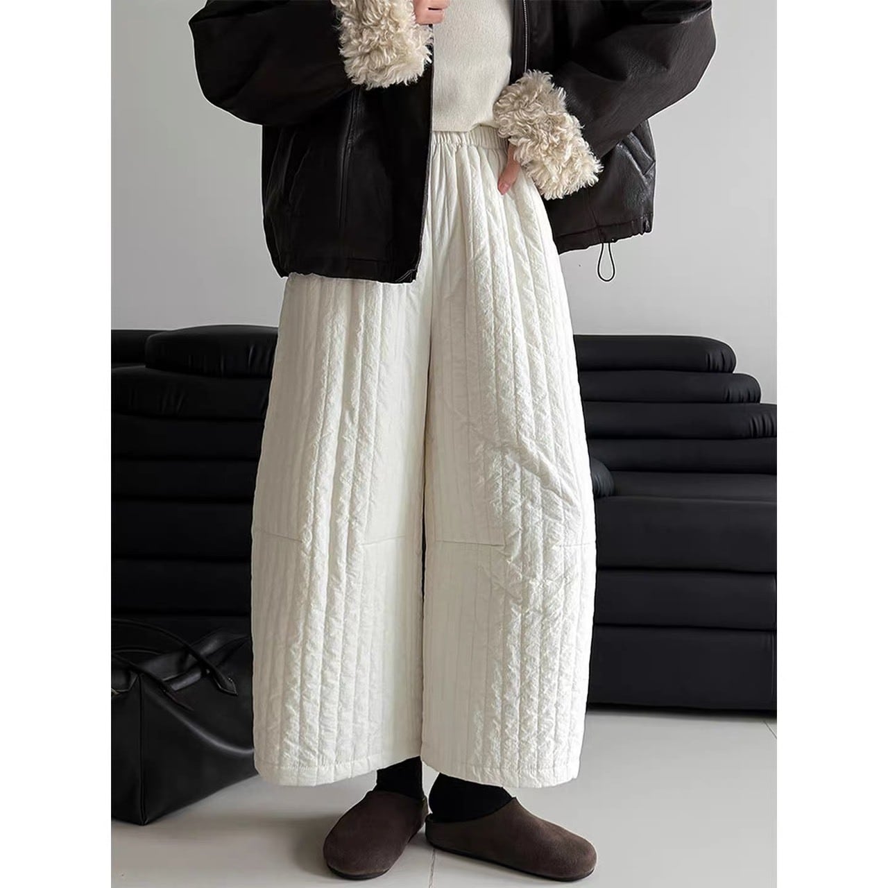 【サイズ】 M ウエスト:62-74cm ヒップ:120cm 太もも周り:76cm パンツ丈:88cm L ウエスト:64-78cm ヒップ:124cm 太もも周り:78cm パンツ丈:89cm ※モデル 166cm/48kg 着用サイズ M ※サイズは測り方により1-3cm程度誤差がある場合がございます。 【素材】 ナイロン73%、コットン27% 【カラー】 オフホワイト ブラック ■hekemeaでは、多数アイテムを取り揃えております。 下記URLよりぜひチェックしてみて下さい。 https://shop.hekemea.com/ ****ご購入前に必ずお読みください**** https://shop.hekemea.com/about 【お届けについて】 こちらの商品は海外店舗より直接発送となる為、 ご入金から2~4週間前後で発送致します。 ■注意事項 ・タイミングによっては 商品在庫切れにより注文キャンセルとさせていただく恐れもございますので、予めご了承くださいませ。 ・こちらは輸入品となります。日本製とは検品基準が異なる為、新品未使用品でもごくわずかな汚れや ほつれがある場合もございます。 ・仕入れ工場を変えることがあるため、記載サイズと若干異なる場合がございます。 ・商品の色味は、お手持ちのデバイスの画面によって実物と若干異なる場合がござます。 ・イメージ違いやサイズ交換等、お客さまご都合による交換、返品は対応出来かねます。