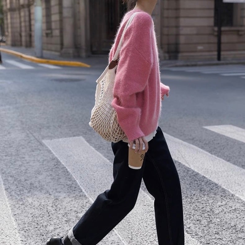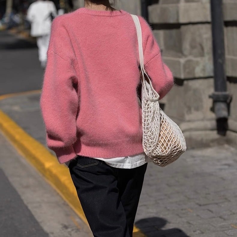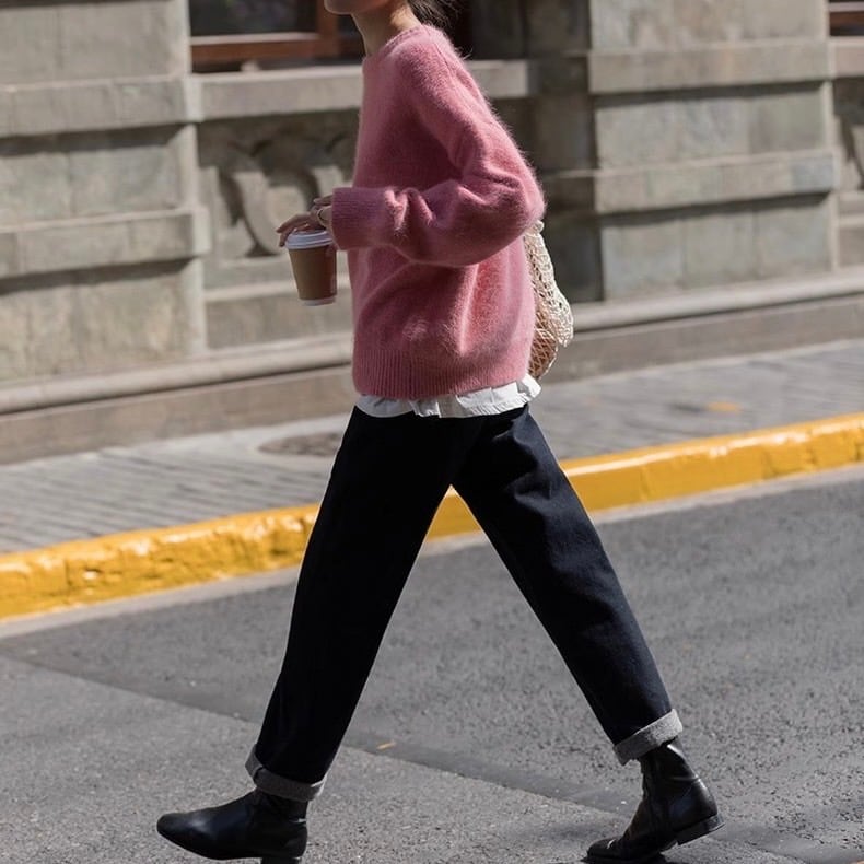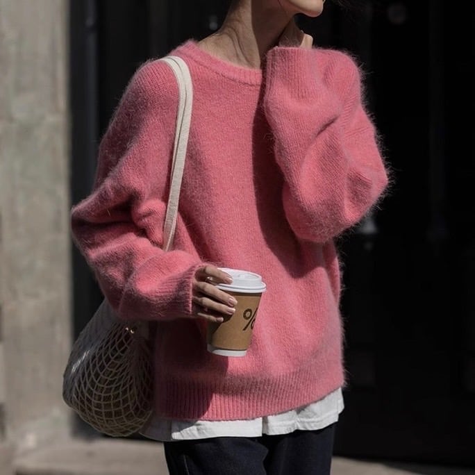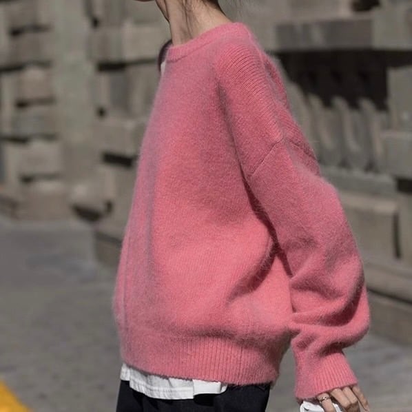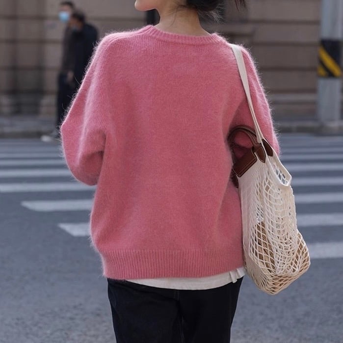 ベーシックなデザインながらも、どんなスタイルにも合わせやすいニット。