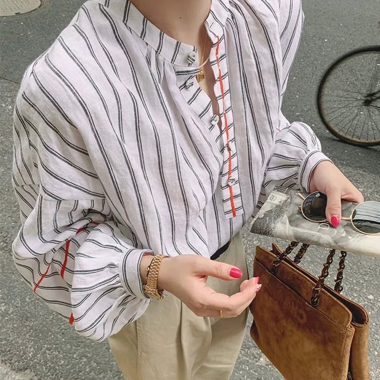 スタンドカラーとストライプデザインが魅力的なアイテム。 カジュアルでもフォーマルでも使える、着回しの効く一枚です。 シンプルめのボトムスと合わせるのがおすすめです。 【サイズ】 S 肩幅:60cm 胸囲:136cm 袖丈:44.5cm 着丈:70cm M 肩幅:62cm 胸囲:140cm 袖丈:45cm 着丈:72cm L 肩幅:64cm 胸囲:144cm 袖丈:45.5cm 着丈:74cm ※海外製品につき1-3cm程度誤差がある場合がございます。 【素材】 ポリエステル、リネン 【カラー】 ストライプ ■hekemeaでは、多数アイテムを取り揃えております。 下記URLよりぜひチェックしてみて下さい。 https://shop.hekemea.com/ ■今週のHIT ITEMSはこちら♪ https://shop.hekemea.com/categories/4955484 ****ご購入前に必ずお読みください**** https://shop.hekemea.com/about 【お届けについて】 こちらの商品は海外店舗より直接発送となる為、 ご入金から2~4週間前後で発送致します。 ■注意事項 ・タイミングによっては 商品在庫切れにより注文キャンセルとさせていただく恐れもございますので、予めご了承くださいませ。 ・こちらは輸入品となります。日本製とは検品基準が異なる為、新品未使用品でもごくわずかな汚れや ほつれがある場合もございます。 ・仕入れ工場を変えることがあるため、記載サイズと若干異なる場合がございます。 ・商品の色味は、お手持ちのデバイスの画面によって実物と若干異なる場合がござます。 ・イメージ違いやサイズ交換等、お客さまご都合による交換、返品は対応出来かねます。