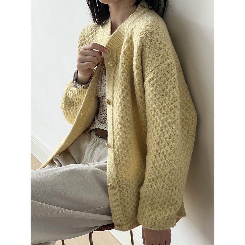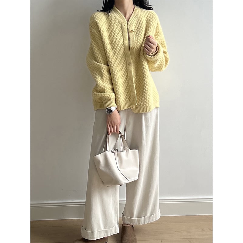 ハートボタンがポイントのルーズニットカーディガン。 ゆったりとしたシルエットはリラックスした雰囲気を演出。 ハートボタンが可愛らしさをプラスし、カジュアルなコーディネートにもピッタリです。 【サイズ】 Freeサイズ 肩幅:48cm 胸囲:116cm 袖丈:56cm 着丈:60cm ※サイズは測り方により1-3cm程度誤差がある場合がございます。 【素材】 アクリル42%、ナイロン30%、ポリエステル28% 【カラー】 イエロー オフホワイト パープル ■hekemeaでは、多数アイテムを取り揃えております。 下記URLよりぜひチェックしてみて下さい。 https://shop.hekemea.com/ ■今週のHIT ITEMSはこちら♪ https://shop.hekemea.com/categories/4955484 ****ご購入前に必ずお読みください**** https://shop.hekemea.com/about 【お届けについて】 こちらの商品は海外店舗より直接発送となる為、 ご入金から2~4週間前後で発送致します。 ■注意事項 ・タイミングによっては 商品在庫切れにより注文キャンセルとさせていただく恐れもございますので、予めご了承くださいませ。 ・こちらは輸入品となります。日本製とは検品基準が異なる為、新品未使用品でもごくわずかな汚れや ほつれがある場合もございます。 ・仕入れ工場を変えることがあるため、記載サイズと若干異なる場合がございます。 ・商品の色味は、お手持ちのデバイスの画面によって実物と若干異なる場合がござます。 ・イメージ違いやサイズ交換等、お客さまご都合による交換、返品は対応出来かねます。