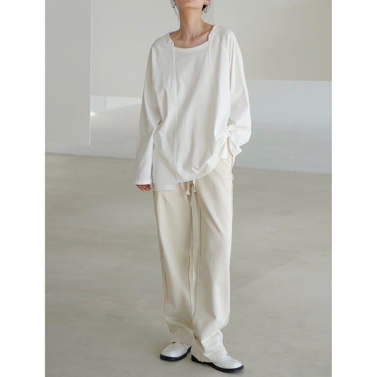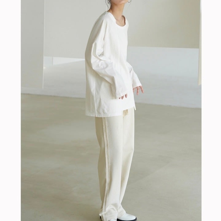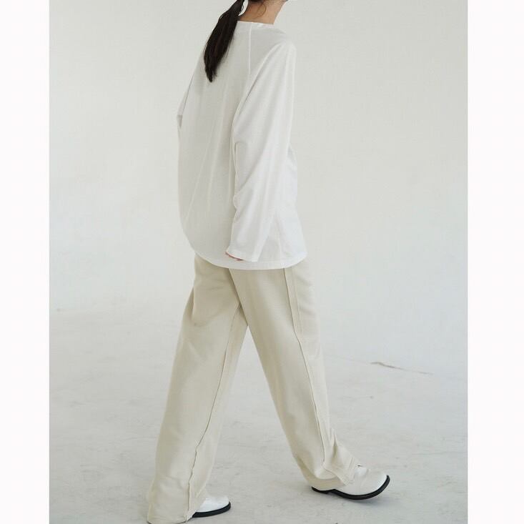 首まわりがすっきりとしたデザインで、カジュアルながらも洗練された雰囲気を演出してくれるロングTシャツ。